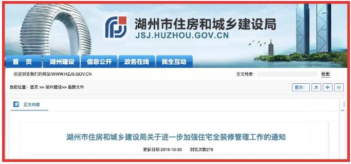 @湖州市住房和城鄉(xiāng)建設(shè)局:湖州住宅全裝修新政出臺(tái),五大維度加強(qiáng)全裝修管理